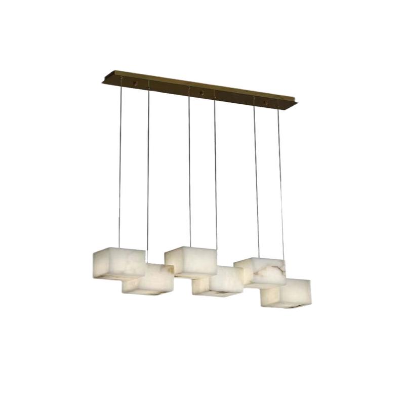 This chandelier features a simple, clean, and versatile design with natural Alabaster. The Alabaster used is directly imported from Spain and highlights the stone’s texture and softness. Carefully hand-made from natural stone, it strives to capture the natural beauty of Alabaster, exuding a romantic and pleasing atmosphere. The emphasis on the stone’s texture creates a unique and elegant appearance, making it an exquisite addition to any space.