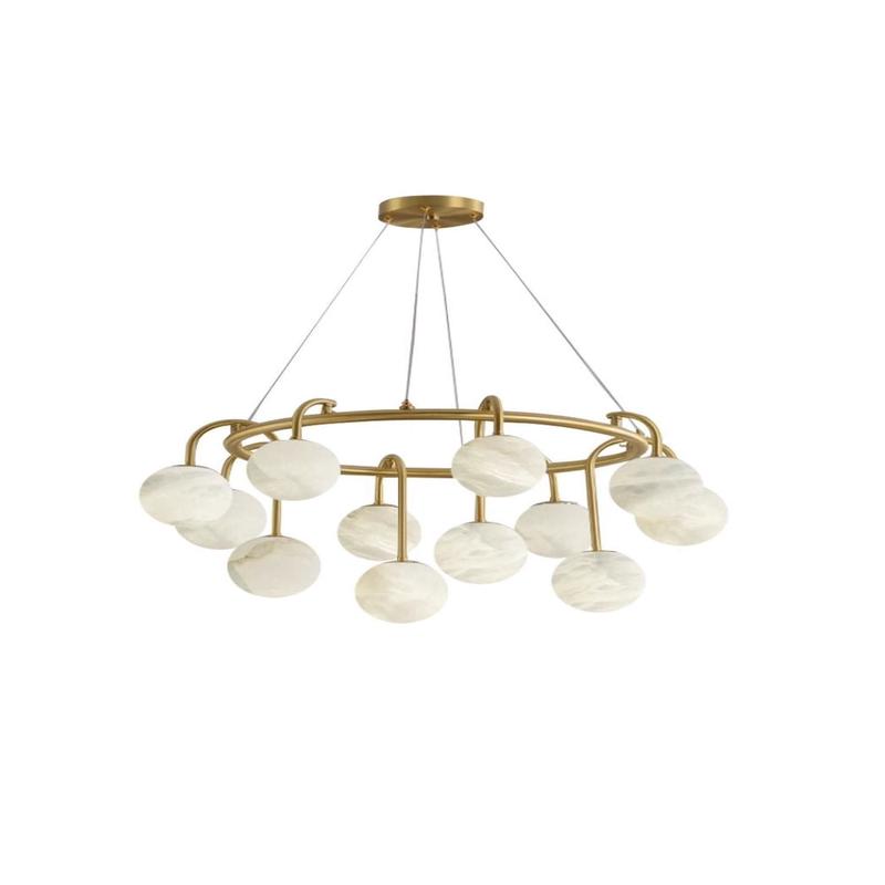 This Alabaster Sphere Ring Chandelier is meticulously constructed from premium materials, delivering outstanding quality and enhancing your living space. It functions not only as an elegant chandelier but also as a captivating work of art.