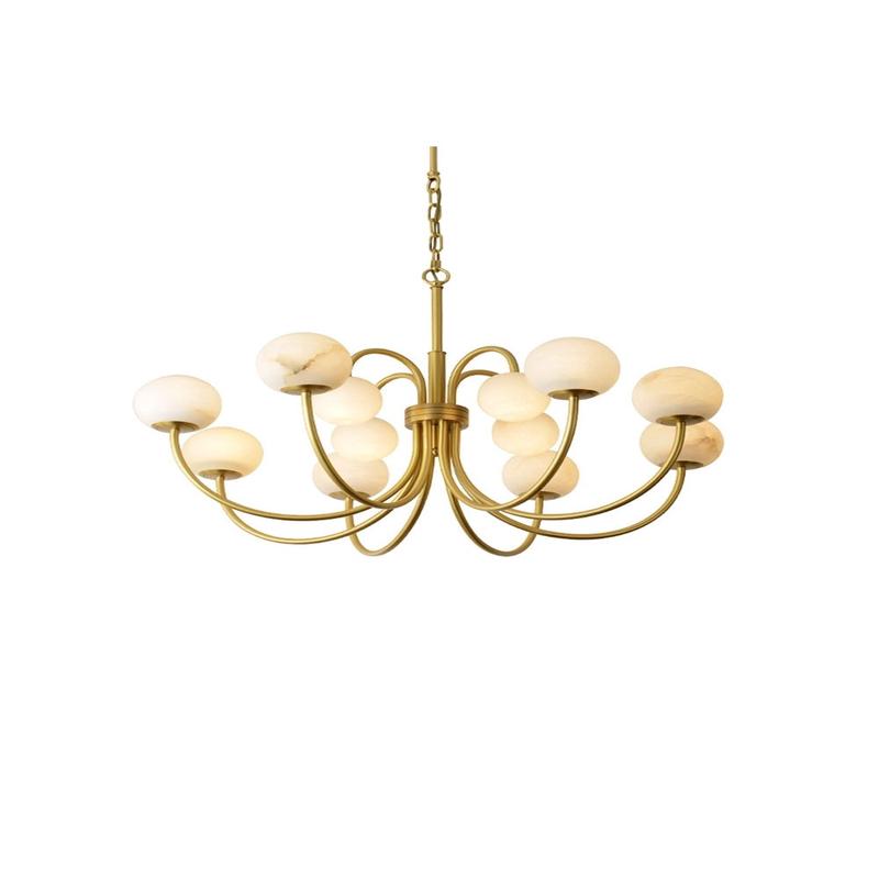 This Alabaster Spherical Radial Chandelier serves as an elegant centerpiece for any room. Featuring alabaster shades that emit a soft, pearl-like radiance, it combines refined style with versatile design. Customize the number of shades to create a modern and impactful lighting element that complements a variety of interiors.