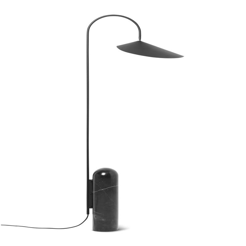 The Arum Creative Floor Lamp by Ferm Living boasts a blend of graceful, natural shapes and a stunning travertine base. Inspired by the Arum plant, this lamp features a delicate, adjustable leaf-shaped shade that offers versatile task and ambient lighting. The shade’s matte off-white interior ensures a soft and even distribution of light, making it perfect for creating a warm and inviting atmosphere in any room.