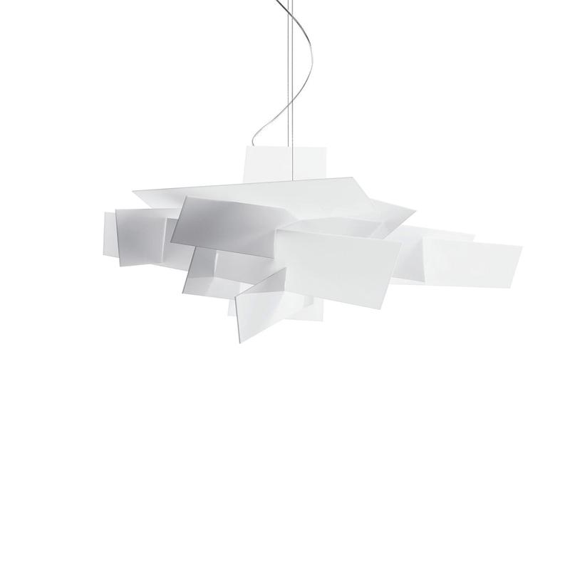 The Big Bang Chandelier’s design creates a captivating blend of light and shadow, producing varying effects depending on the viewer’s perspective. Though the intersecting sheets appear randomly arranged, the carefully planned layout results in a contemporary and unique chandelier with a sculptural quality. The sleek white acrylic glass plates guide and reflect the downward light from the lamp, creating a surprisingly harmonious and consistent lighting effect despite the seemingly chaotic structure.