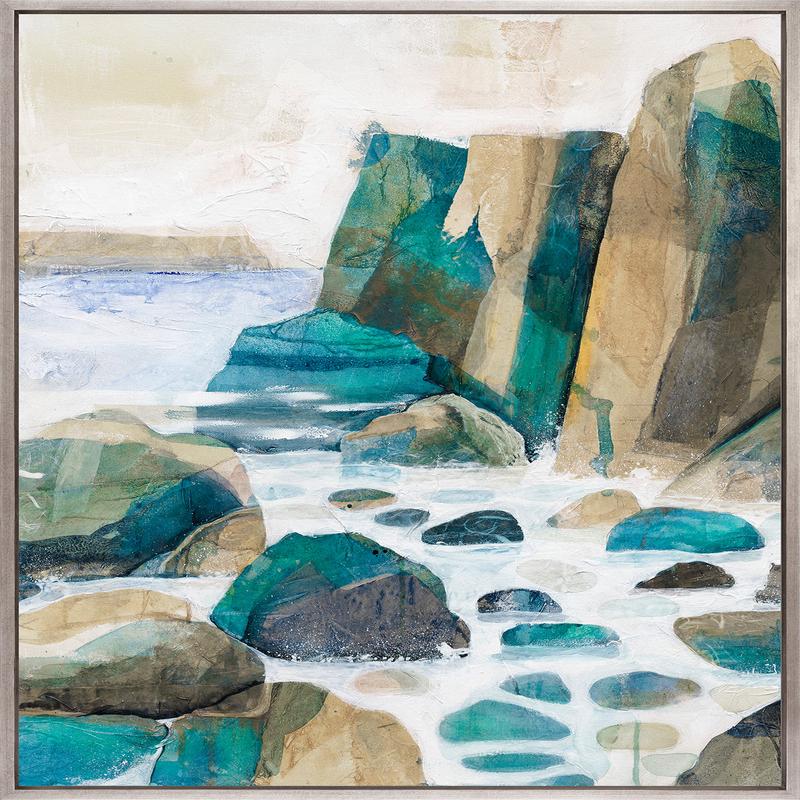 Inspired by rugged shorelines and tidal movement, these artworks combine layered texture and painterly detail to evoke the raw beauty of the coast.