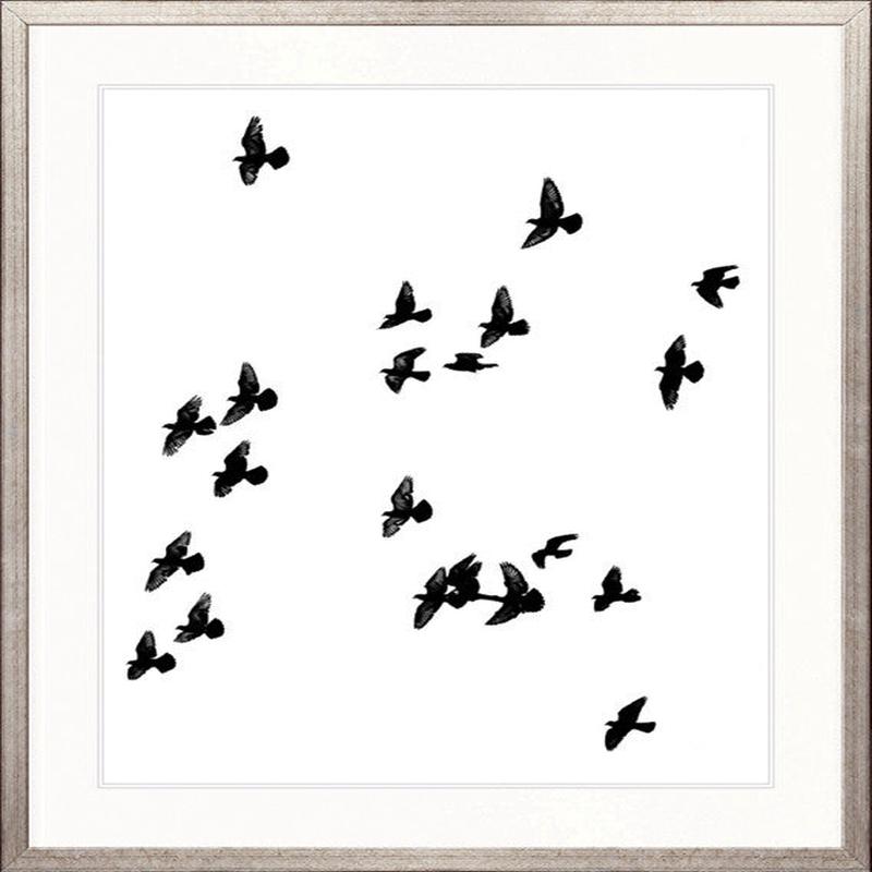 Delicate silhouettes of birds in graceful motion are captured against crisp white backdrops – bringing a sense of freedom, lightness, and serene simplicity to contemporary spaces. Perfect for airy, minimal interiors.