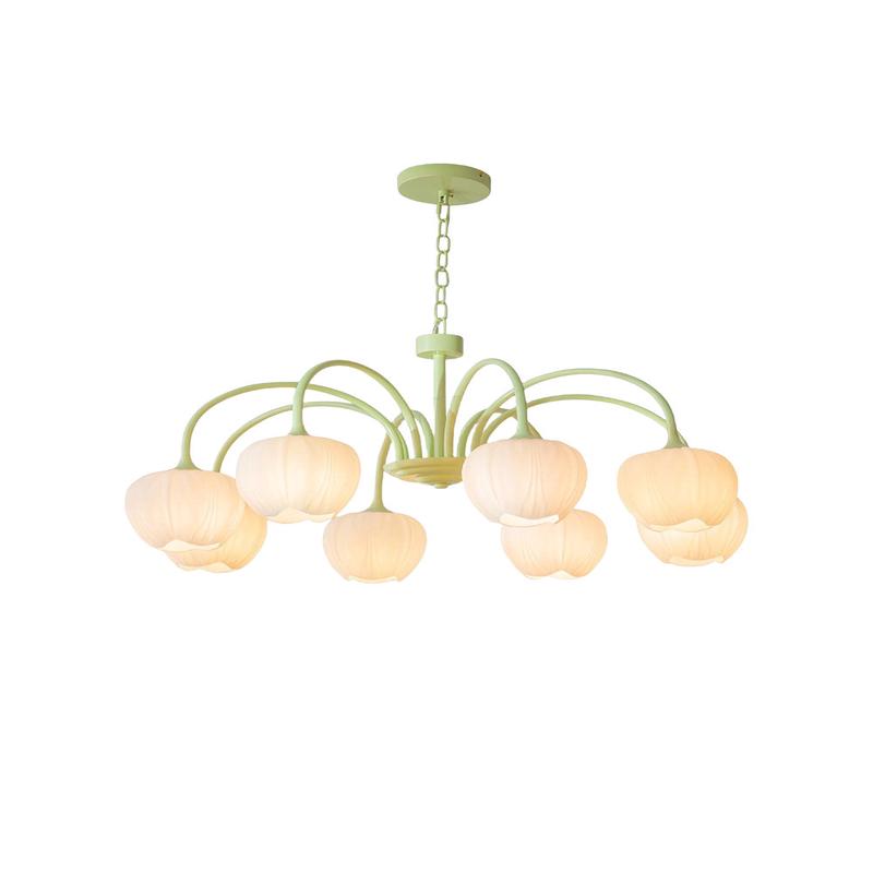 The Blossom Tulip Matcha Chandelier brings a serene and modern vibe to any room. Its white glass shade creates a tranquil ambiance, while the matcha design adds a fresh and contemporary touch. Elevate your space with this stunning light fixture.