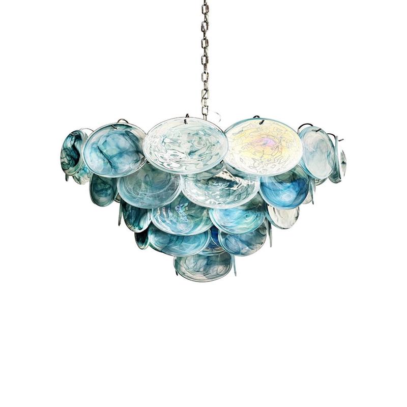 Blue Glass High Quality Murano Iridescent Chandelier