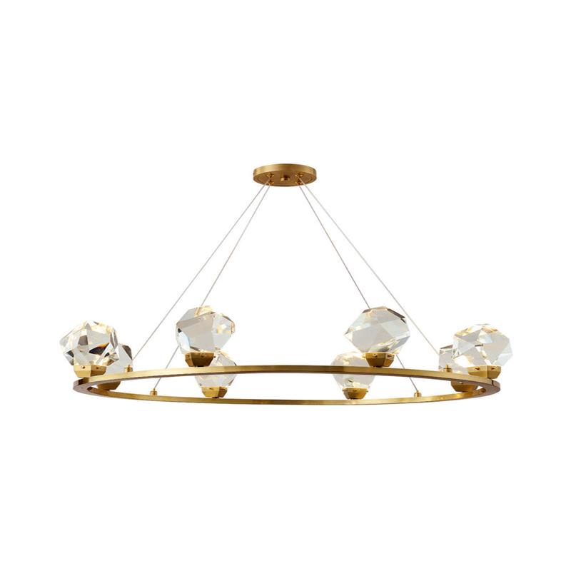 The charming organic nature of the Brass Nicole Crystal Crown De Chandelier casts a sparkling light on the dining table or living room. is a gorgeous addition as it showcases This stunning chandelier boasts jewel-like glass shades that glisten and add a touch of elegance to any