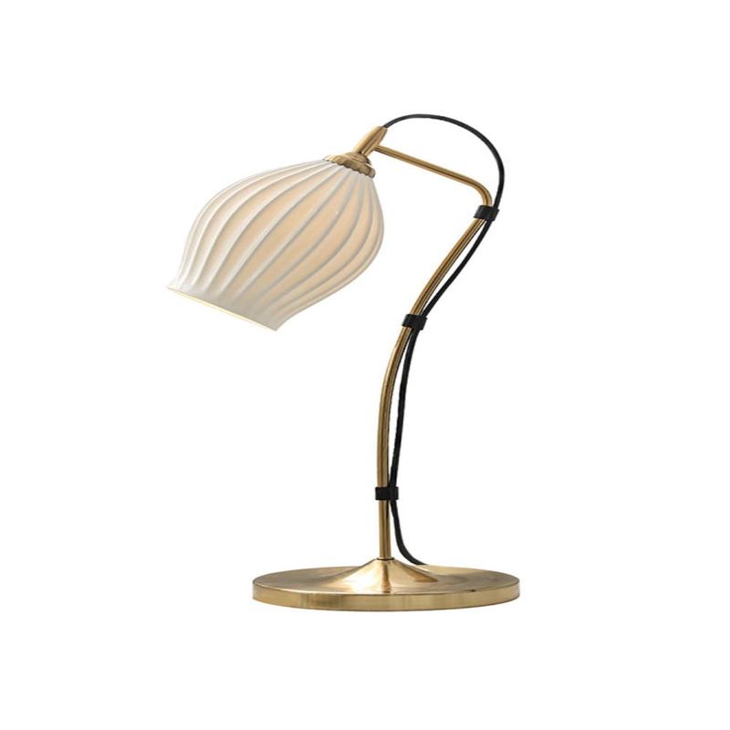 This Ceramic Ribbed Table Lamp delivers dramatic light and sculptural beauty. Eye-catching bone china shade is molded into intricate organic shapes by experts, providing a unique lighting experience. Enhance the ambiance of any room with this elegant and versatile lamp.