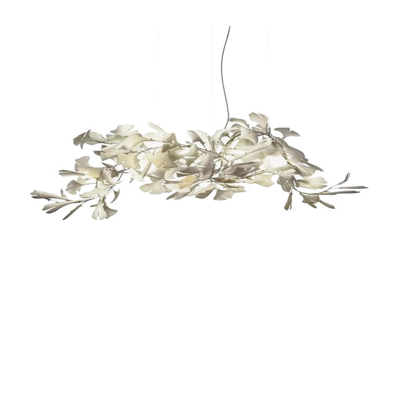 This ceramic ginkgo tree petal chandelier shows its luxurious style in overall design, material, and manufacturing technology. The brass lamp body is covered with exquisite ceramic petals, which reflects the perfect combination of lighting design and natural plants.