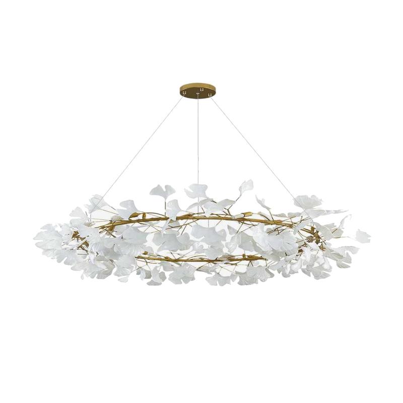 This ceramic chandelier showcases its luxurious design, materials, and innovative manufacturing techniques. The brass frame is adorned with delicate ceramic leaves, resulting in a seamless blend of lighting artistry and natural elements. These bespoke Gingko Chandeliers feature handcrafted porcelain leaves, adding a touch of elegance to any space. Through its interplay of light and ceramic, this light installation creates a welcoming yet sophisticated atmosphere. Its functionality as a light source is only surpassed by its captivating presence and mesmerizing design. With a dynamic energy reminiscent of a living plant, it brings a sense of tranquility and revitalization to any room. The installation’s design seamlessly integrates with the overall architectural space, reflecting the visions of the architects and interior designers.