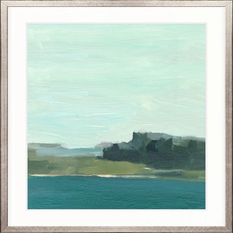 Soft brushstrokes in muted greens, deep teal, and gentle blues evoke peaceful coastlines and misty horizons – bringing calm, understated beauty and a serene, natural atmosphere to contemporary interiors.