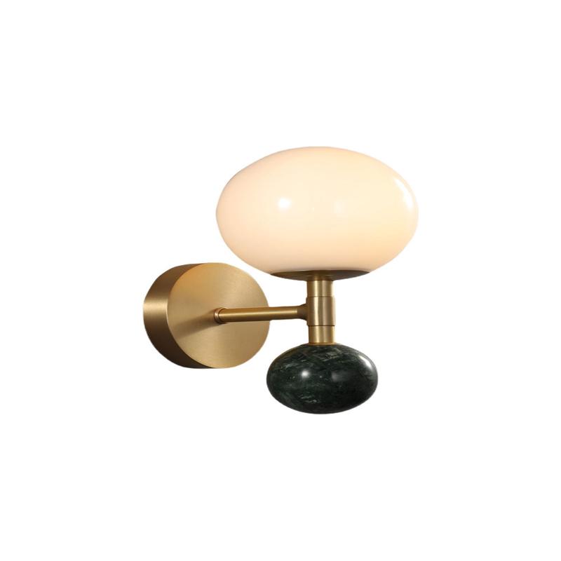 The Dalt Wall Lamp features an opal glass lampshade, brass and a marble piece, both spherical, making it the ideal choice for adding decoration and illumination to any wall in your home.