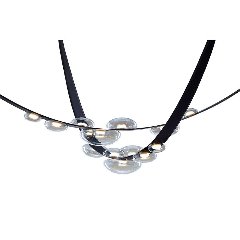 The Dew Drops Collection is inspired by the natural beauty of dew drops, offering precise details and a touch of iridescence. The crystal objects are illuminated by an internal light source and securely placed on hand-sewn bands made from innovative material. This collection offers endless installation possibilities, allowing for unique and artistic compositions to add a distinct centerpiece to any space.