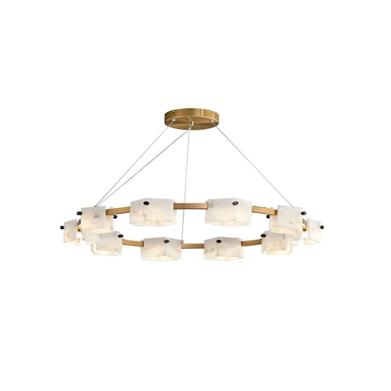 Enhance your home with the exquisite Round Trinidad Alabaster Chandelier, crafted from fine snowflake gypsum. This diamond-shaped, handcrafted piece offers a refined and enduring aesthetic. Its unique design brings a striking and elegant focal point to any interior, showcasing exceptional craftsmanship and style.