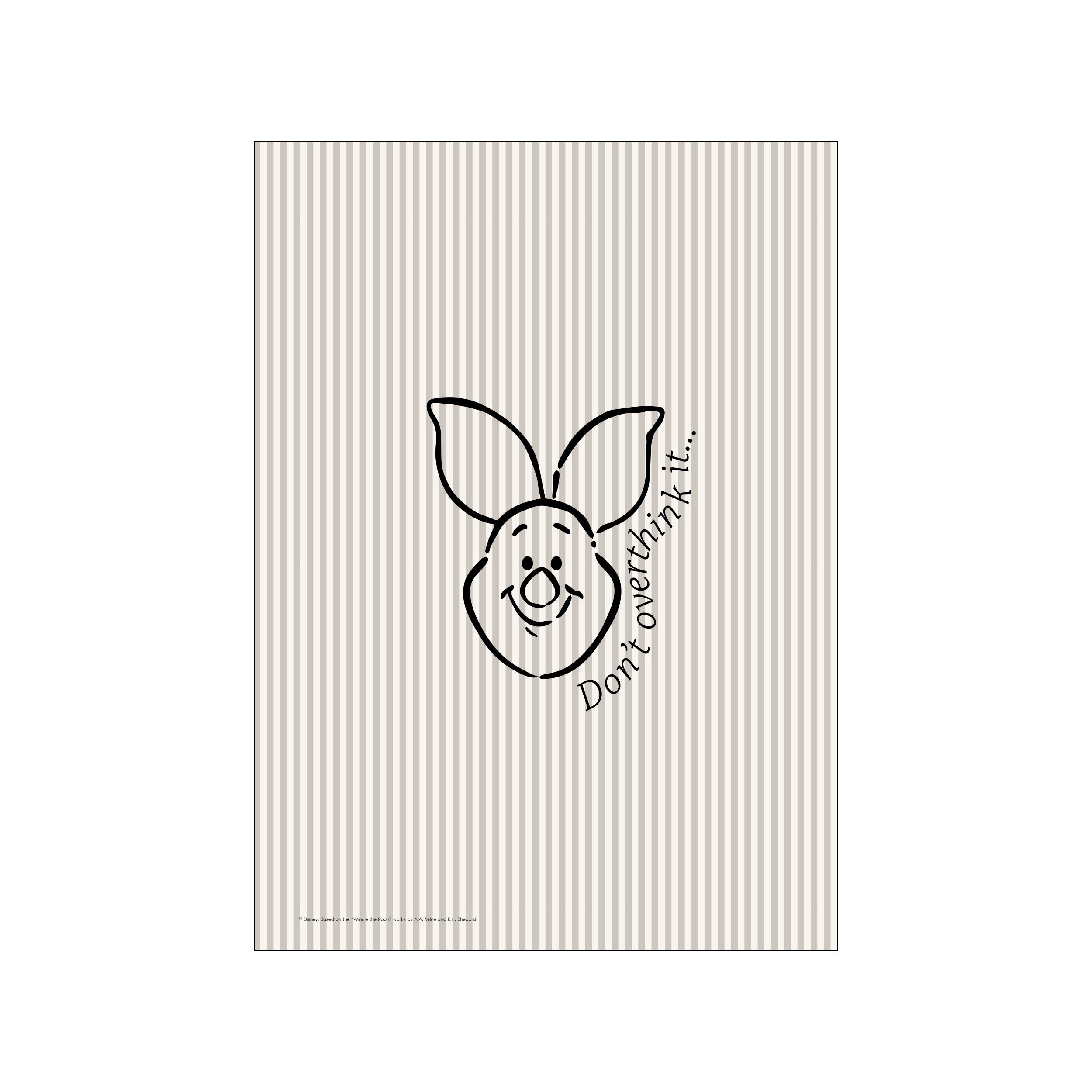 Disney’s Piglet smiles sweetly on a soft striped background with the gentle reminder: Dont overthink it