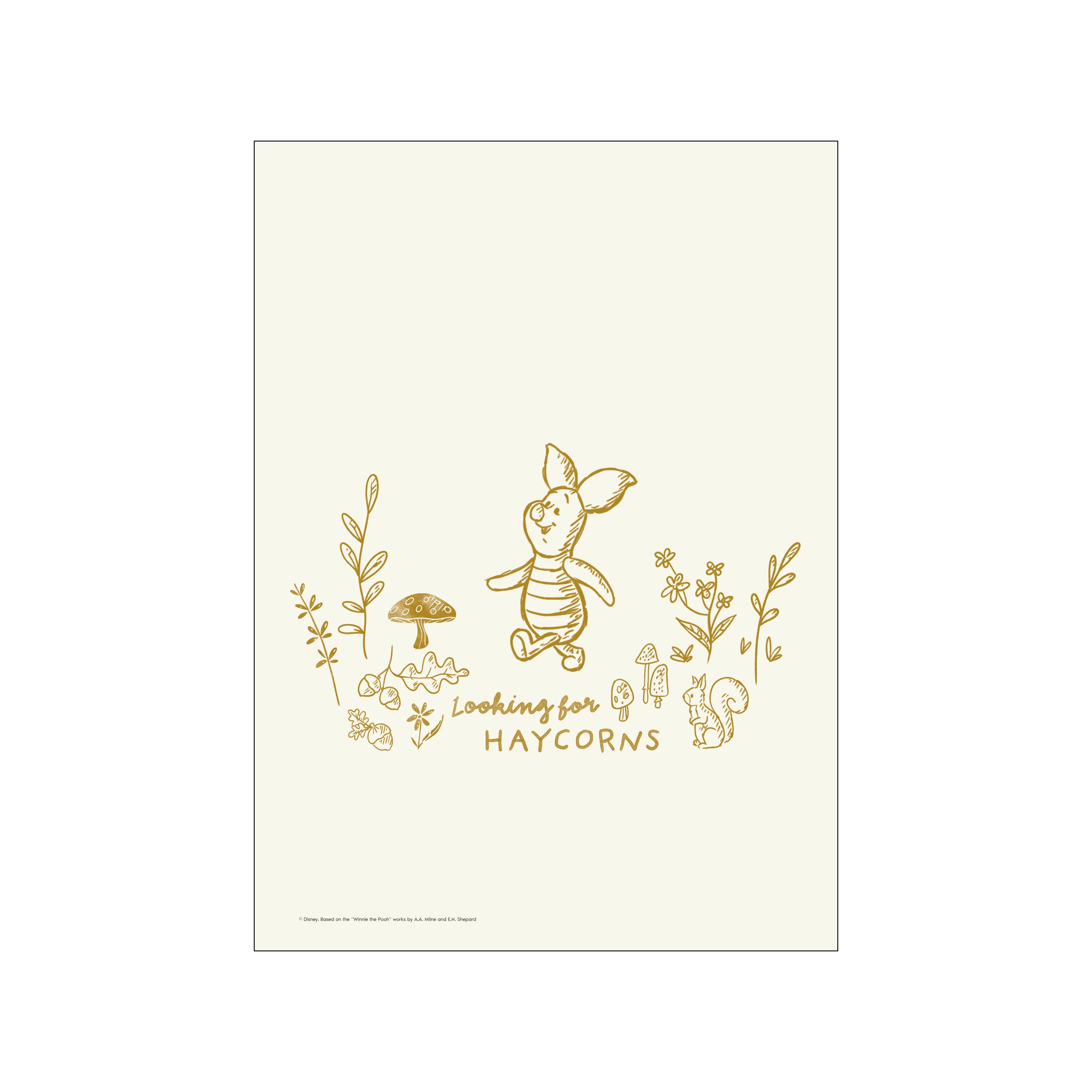Disney’s Piglet searches the grass for haycorns in this soft, woodland sketch full of hopeful curiosity.