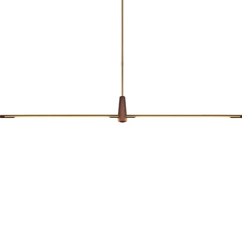 The Dorian Chandelier combines minimalist design with high-end materials to achieve a contemporary, elegant aesthetic. Made with copper and walnut, its streamlined appearance exudes a refined charm, making it the perfect addition to any dining space.