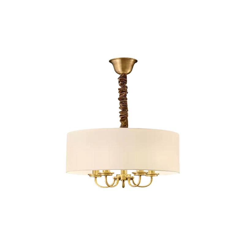 This fabric cylindrical pendant lamp features a sleek brass frame with a soft fabric shade. Its retro design provides a warm, inviting glow, perfect for enhancing any living space.