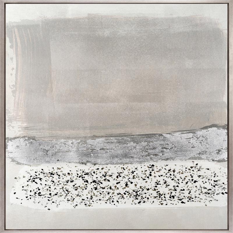 Hand Finished by artist. This design starts its life as an original artwork, then its reproduced on canvas using the finest inks. The artist then hand-embellishes the canvas artwork using uniquely placed terrazzo inspired paint chips and stunning silver leaf to give a designer finish. The result is a timeless, gallery-quality piece designed to elevate your space.