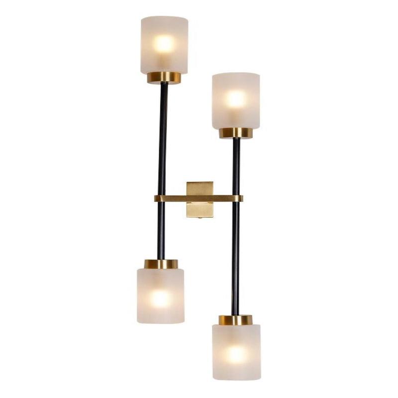 Two sleek arms hold four cylindrical glass shades at varying heights. Comes in brass and bronze finish options. Choose from opal or smoked glass shades and left or right hand versions.