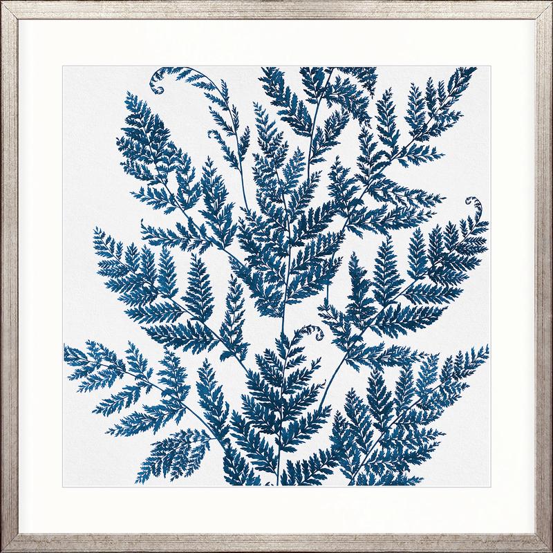 This graceful series of fern compositions rendered in tonal blues and neutrals is perfect for creating serene, layered interiors with a refined touch.