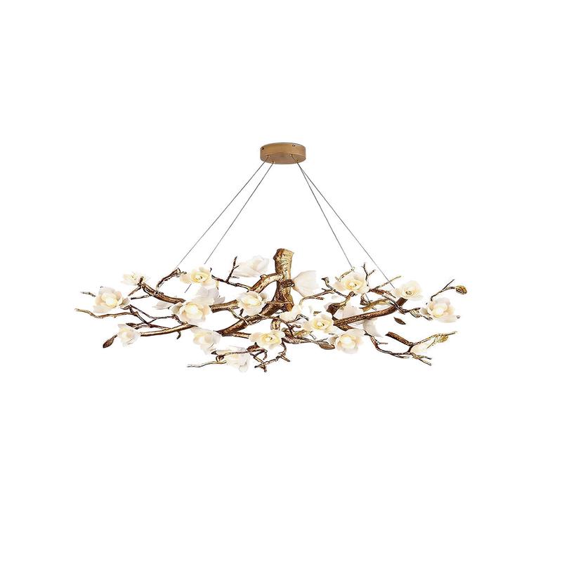 Add a touch of elegance to any space with this exquisite Floral Branch Chandelier. Made of pure copper and adorned with stunning white ceramic blooms, this opulent ceiling fixture will create a focal point in any area. Its timeless design guarantees a sophisticated aesthetic that will surely leave a lasting impression.