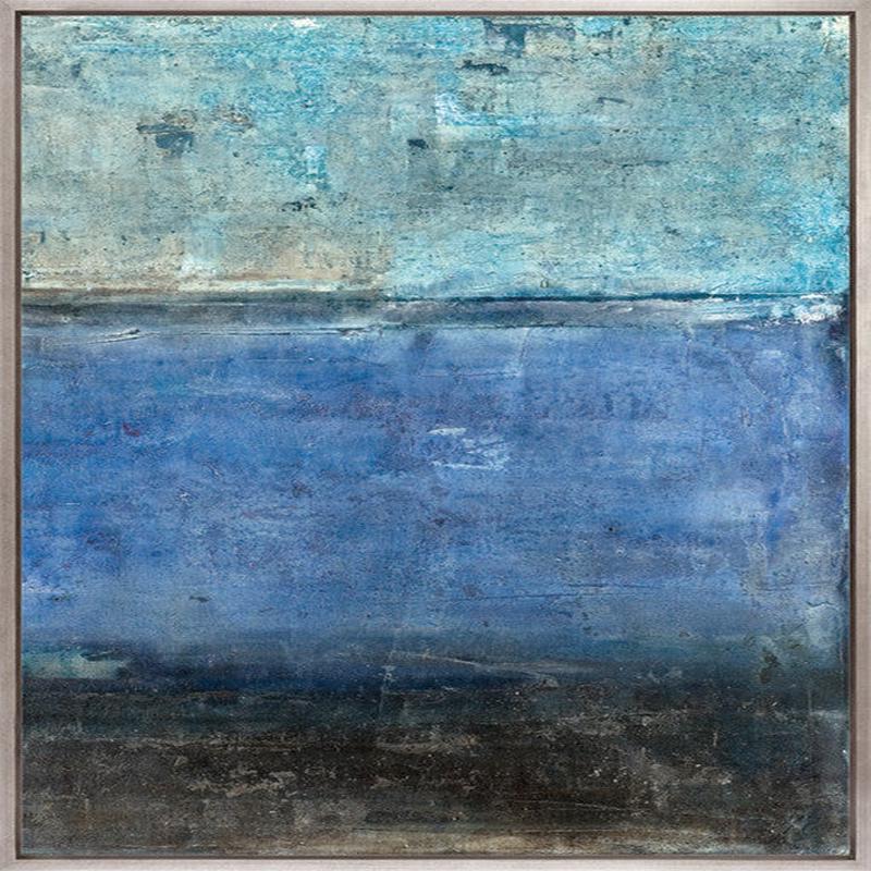 This collection evokes raw coastal beauty with soft textural layers and muted, earthy tones. Weathered blues, sandy neutrals, and touches of charcoal blend into abstract landscapes reminiscent of horizons, tides, and windswept shores. Calm, organic, and timeless.