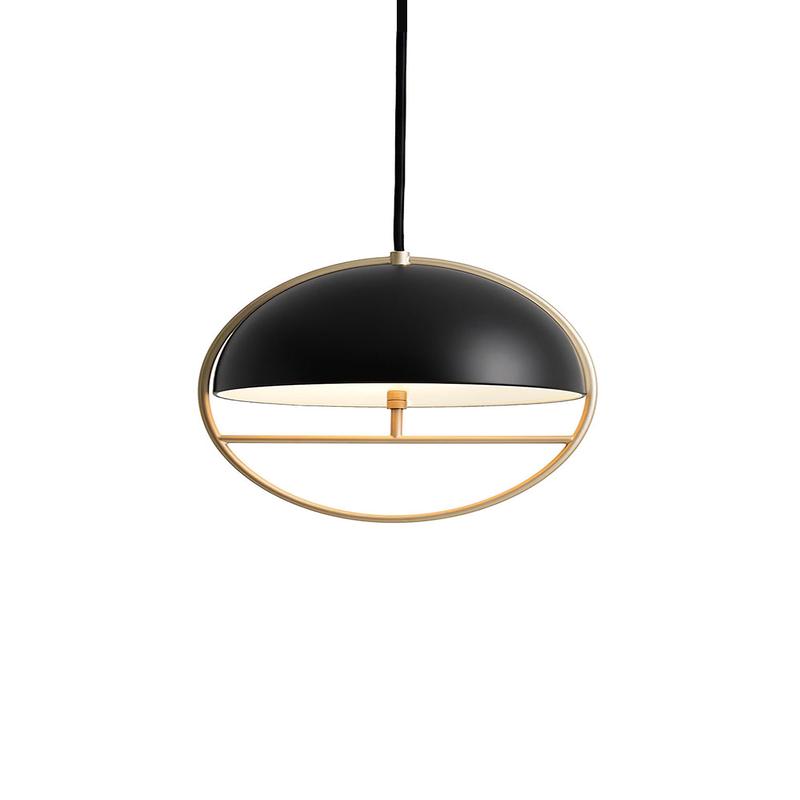 The Huan Pendant Lamp is designed with the oriental garden’s iconic moon gate silhouette in mind. Its balanced shapes and diffused light create a tranquil atmosphere during the day and a warm glow at night. Its sleek design allows for versatile placement, either as a standalone piece or as part of a series above a table. The circular metal frame, reminiscent of the moon gate, features a contrasting finish that adds visual interest. The hemisphere shade not only directs light downwards for a soft ambiance, but also shields the eye from side glare.