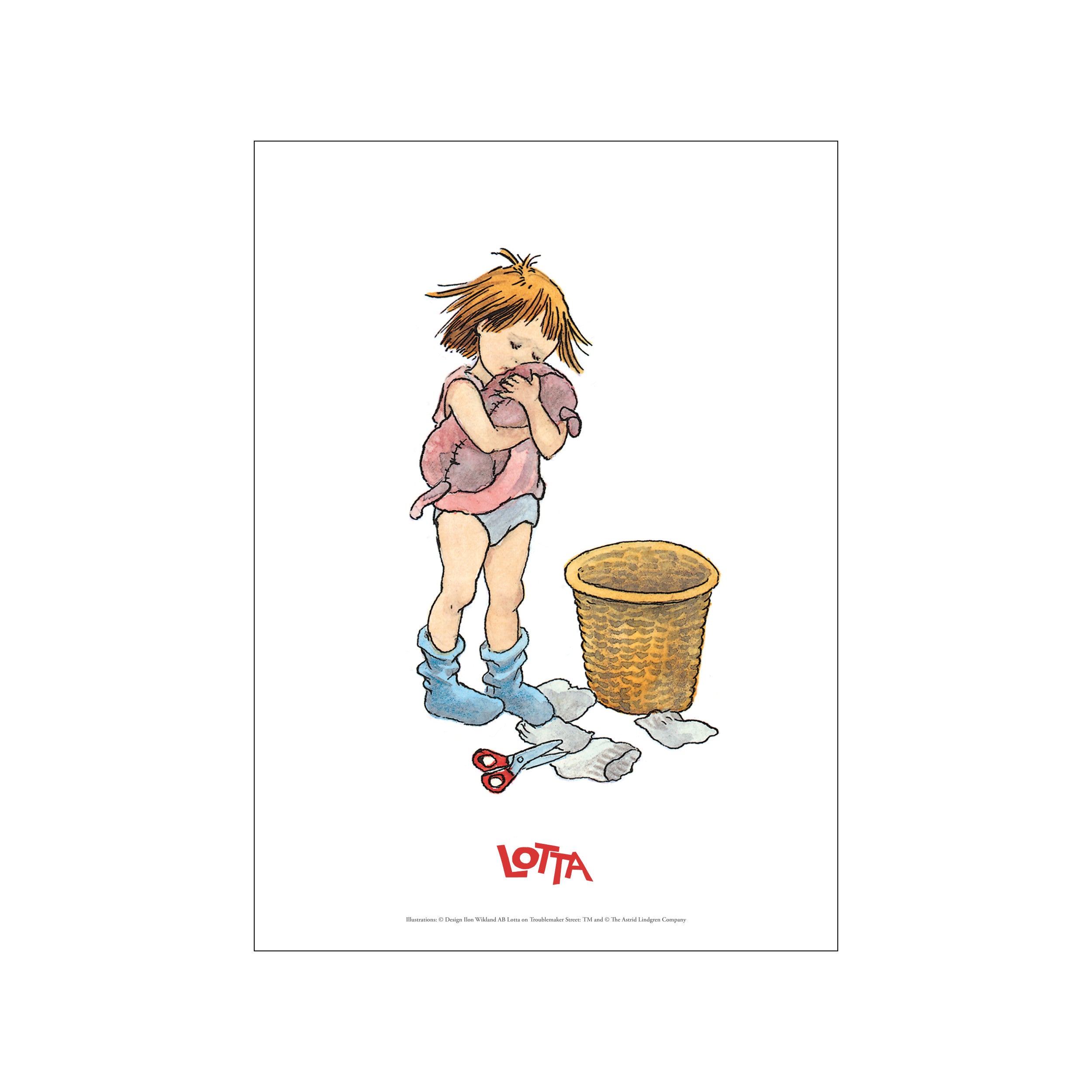 Capturing the innocence of childhood, this tender Lotta poster shows Lotta holding her soft toy pig close. With soft watercolor tones and expressive details, its a lovely piece for nurseries and playrooms.