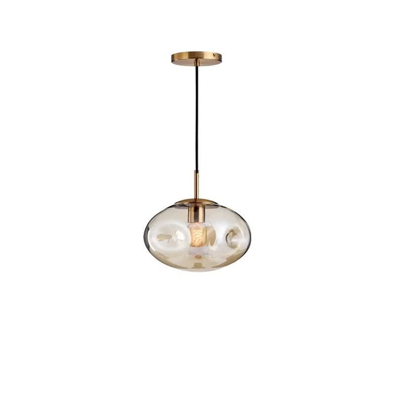 The “Jaden Dimpled Pendant Light” showcases a combination of contemporary style and sophistication in alluring Amber Gray. With a dimpled glass lampshade, this pendant light is one of a kind and can be found in both amber and gray color options, making it a perfect fit for any modern interior design.