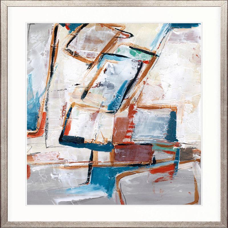 Bold and dynamic, these abstracts feature layered geometric forms in earthy browns, soft greys, and muted greens, contrasted with vibrant teal and rust accents. Perfect for adding structure and movement to contemporary interiors with a subtle mid-century influence.