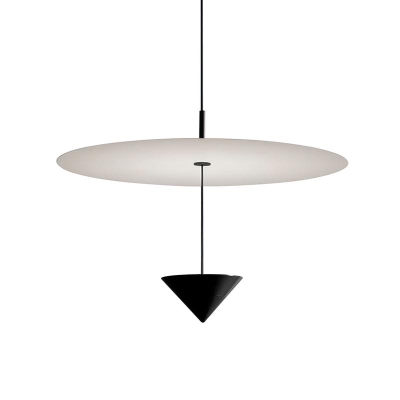 This Italian-designed pendant light perfectly blends ethereal beauty with a modern geometric design. Its sleek metallic disc and black conical light create a stunning centerpiece, perfect for both individual celebration and statement cluster arrangements.