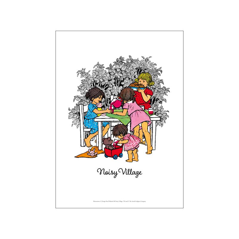 Celebrate simple joys with this Noisy Village poster, showing the children enjoying a garden picnic with fresh juice and homemade buns. With its detailed linework and bright splashes of color, it brings a cheerful countryside vibe into any space.