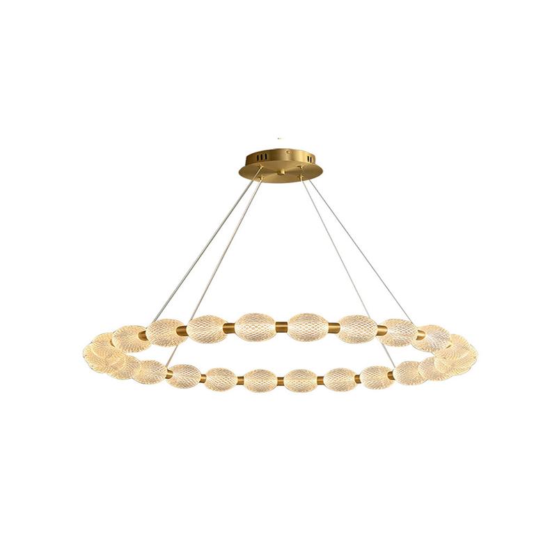 This Luxury Pearl Ring Chandelier emits radiant light, showcasing a stunning and refined character. Adorned with an abundance of crystal pendants in varying sizes and shapes, reminiscent of a cascade of sparkling fruit, it effortlessly enriches any spacious room with a romantic and opulent ambiance.