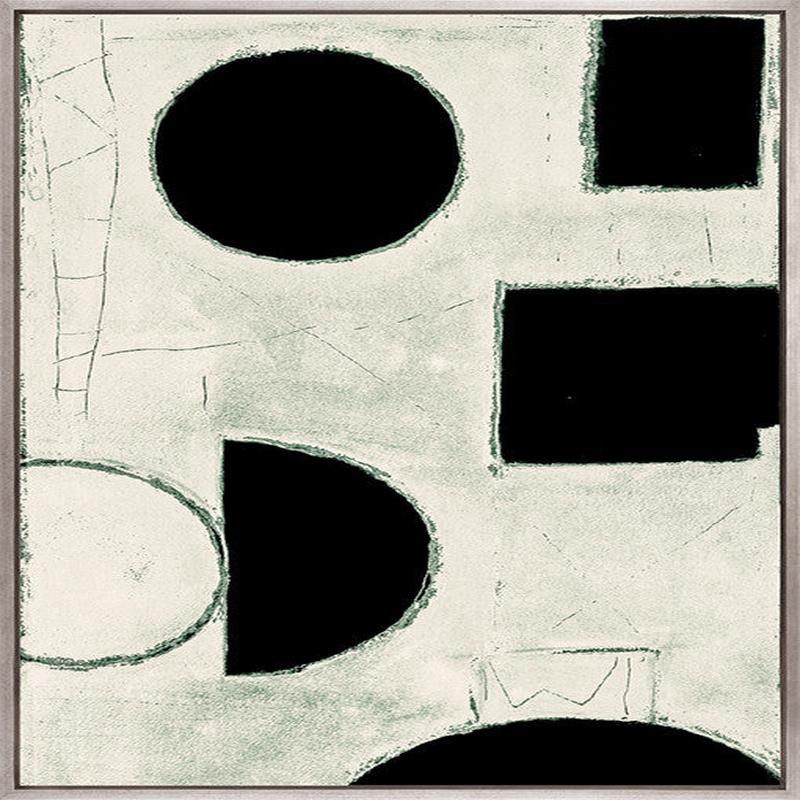 Bold black geometric shapes contrast against a soft, textured background – creating a striking, minimalist composition that adds modern structure and graphic sophistication to contemporary interiors.