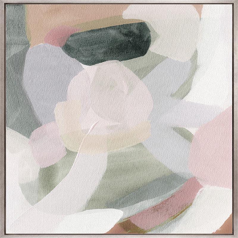 Soft, flowing layers of blush, sage, cream, and muted charcoal blend in a delicate abstract form – bringing gentle elegance, warmth, and a serene, feminine feel to contemporary spaces.