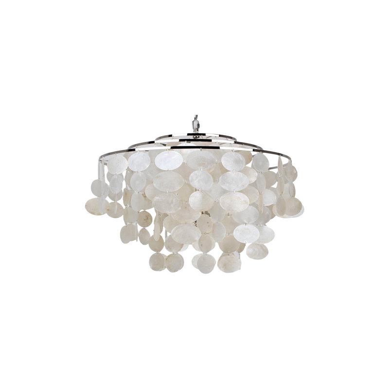 The modern layered capiz shell chandelier is an elegant and unique chandelier that is suitable for the combination of natural materials and modern design. The lamp body adopts a layered design, decorated by countless translucent round capiz shell pieces, each shell uses soft pearl glass, shining with charming light and shadow effects under the illumination of the light, the frame of the chandelier is supported by a modern and simple metal ring, and the surface is chrome-treated, showing the perfect combination of sense of touch and tumor plating.