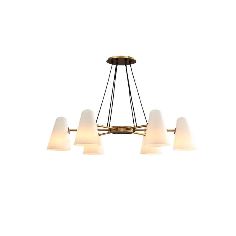 The Montfaucon Chandelier showcases a refined balance of clean lines and graceful curves, creating a modern yet timeless focal point for any room. Its softly shaped shades diffuse light beautifully, offering a warm and inviting glow. With its elegant multi-arm silhouette and understated design, this chandelier enhances living rooms, dining areas, and bedrooms with effortless sophistication and a serene, elevated ambiance.