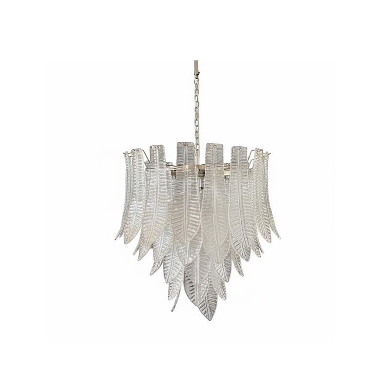 The Murano Felci Glass Chandelier is a sculptural celebration of Italian craftsmanship, showcasing hand-blown felci (fern-leaf) glass elements that cascade gracefully in layers. Each leaf-shaped piece catches and scatters light with intricate texture and depth, creating a mesmerizing glow and refined movement. Designed to enhance grand dining rooms, stylish living areas, or sophisticated foyers, this chandelier blends artistic elegance with timeless luxurymaking it the perfect centerpiece for discerning interiors.