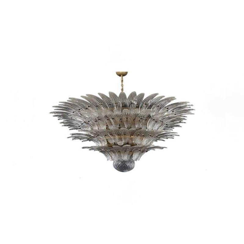 This Murano Palm Leaf 4-Tier Clear Glass Chandelier shows elegance and grandeur with its pure transparent design, perfectly interpreting the essence of Italian handmade glass craftsmanship. The lamp body is composed of four layers of palm leaf-shaped glass pieces, each of which is carefully crafted by hand-blowing technology, showing delicate texture and streamlined beauty. The layered design brings a rich three-dimensional sense, making the chandelier emit charming light from every angle.