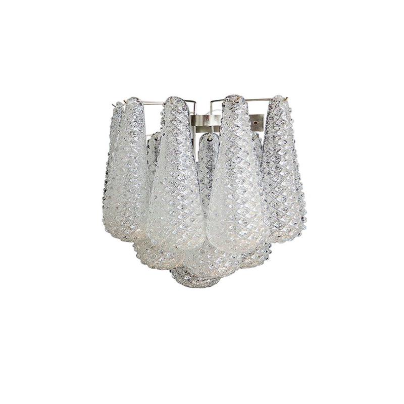 Illuminate your space with the elegant Murano Petals White Wall Light. Each wall sconce consists of 10 glass petals iridescent alabaster white glass disc. Its soft, warm light creates a cozy and inviting atmosphere, perfect for relaxing.