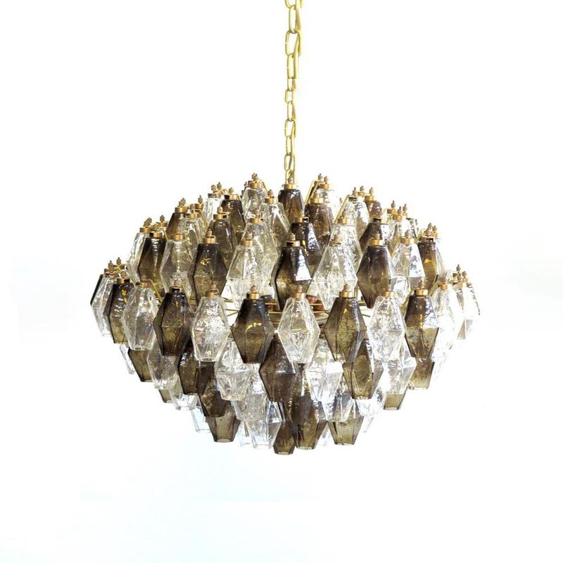 The Murano Poliedri Smoked Globe Chandelier is an exquisite representation of Italian craftsmanship, blending luxury and timeless design. This chandelier features a perfectly spherical structure adorned with dozens of hand-blown Murano glass polyhedra in a stunning combination of smoked and clear hues. The smoked glass elements create a dramatic interplay of light and shadow, while the clear polyhedra add a sparkling brilliance that enhances its visual appeal.
