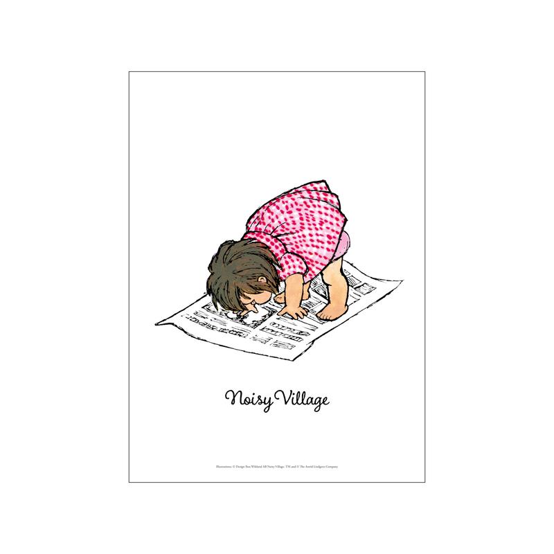 This charming poster captures little Kersten bending over a newspaper, full of childlike curiosity. A playful and nostalgic piece that brings Astrid Lindgrens Noisy Village world to life, ideal for kids rooms and collectors alike.