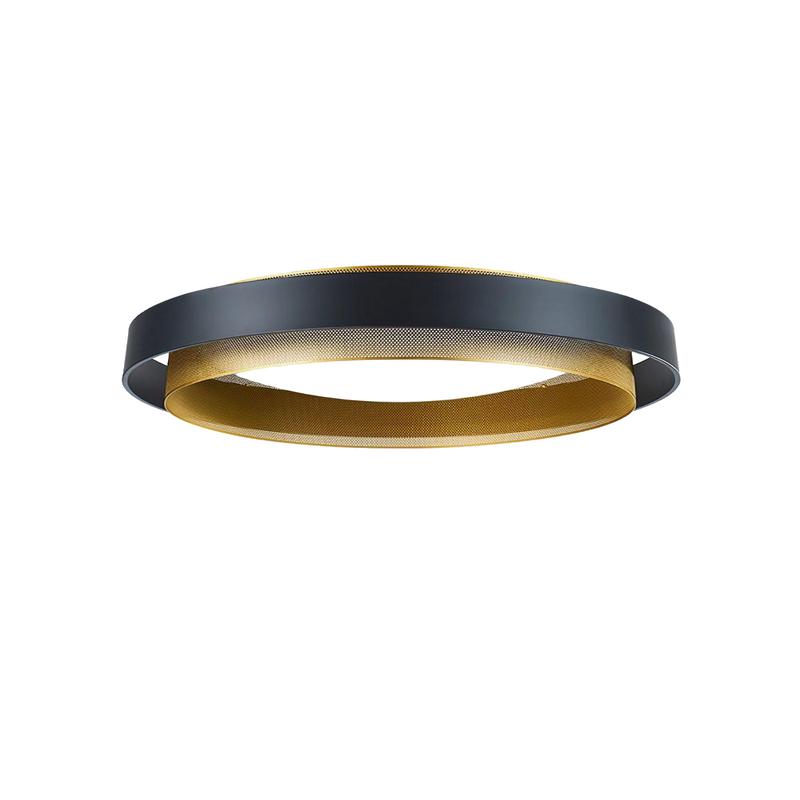 This iron mid-century-inspired one-light vintage gold-finished is the perfect light to hang over your dining table. The dark Black outer ring adds contrast and dimensionality to the simple elegant design.