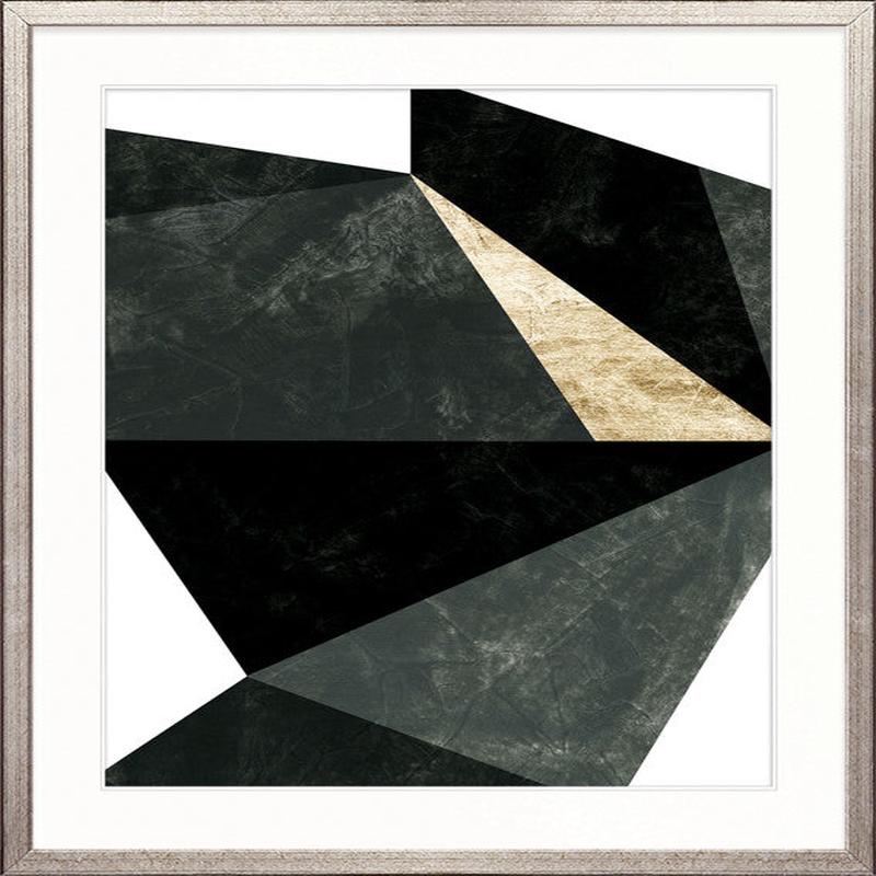 Sharp geometric shapes in deep charcoal and black are contrasted with textured gold accents – creating a bold, luxe statement that adds modern sophistication and refined glamour to contemporary interiors.