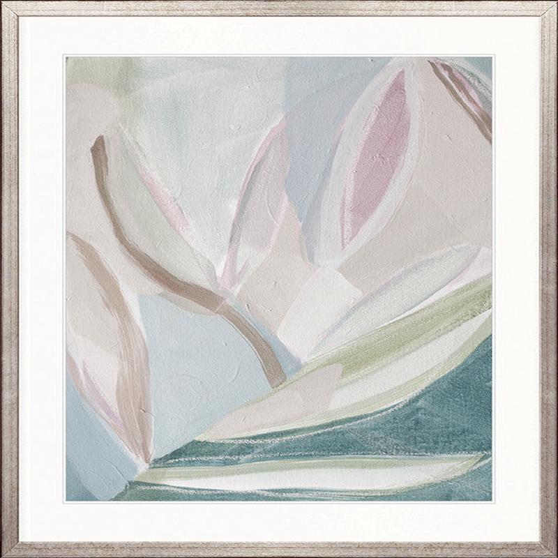 Soft, flowing foliage forms in delicate layers of sage, blush, and muted blue create a serene, airy feel – bringing gentle movement, subtle colour, and effortless elegance to fresh, contemporary interiors.