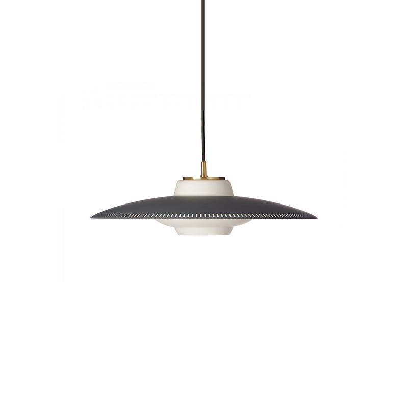 The Opal Shade pendant Lamp features opal glass, which was purposely chosen by the renowned light designer for its unique lighting capabilities. The grooves in the wide metal shade, combined with the opal glass, create a warm and elegant light effect. This pendant boasts a timeless design, sophisticated metal accents, and impeccable craftsmanship, making it a stunning addition to any dining, kitchen, hallway, or cozy corner.
