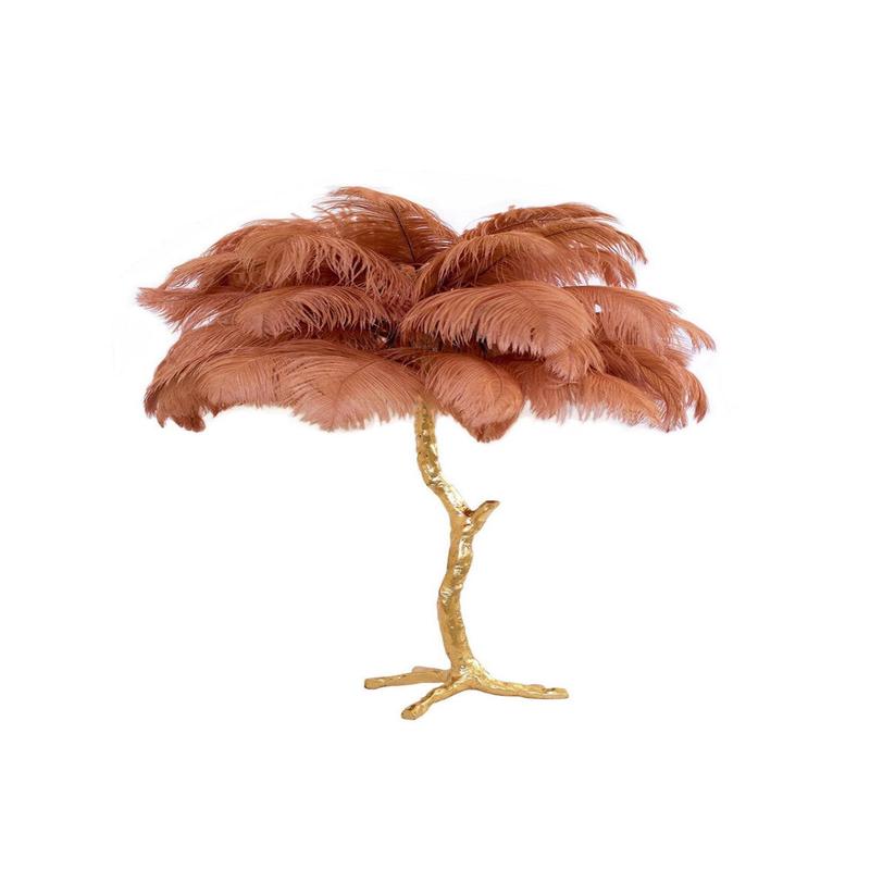 The Ostrich Feather Table Lamp is a stunning addition to any luxury setting, with its palm tree design and intricate ostrich feather foliage. Its impeccable craftsmanship and exquisite design make it a true masterpiece among standing lamps. Add a touch of Hollywood regency to your dcor with this illuminating work of art.