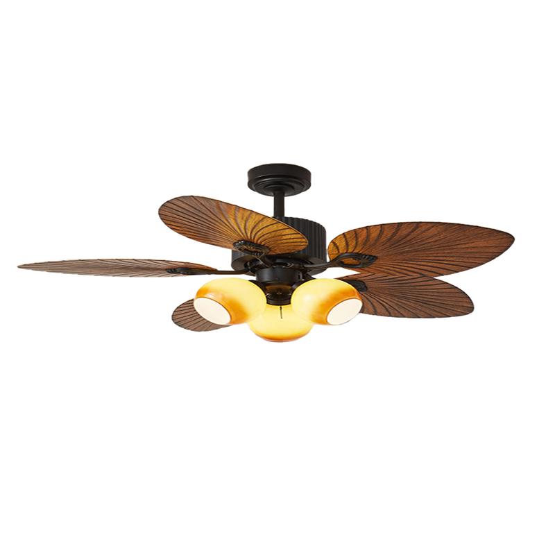 This palm wood vintage fan chandelier features wooden blades shaped like palm leaves, bringing a touch of natural elegance to your space. It blends vintage charm with tropical warmth, creating a fresh ambiance and providing soft, diffused light. It’s perfect for a living room, dining room, or bedroom that blends rustic and sophisticated styles.