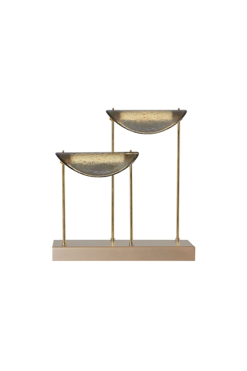 The elegant Paolo Castelli Manta Table Lamps are inspired by the graceful movement of a lightweight leaf swaying in the wind. Two couples of streamlined rods stemming from a coordinated plinth base serve as graceful sustain for two leaf-like shades – handcrafted of smoky Murano glass – that appear slightly curved while enveloping the LED sources fitted beneath them.
