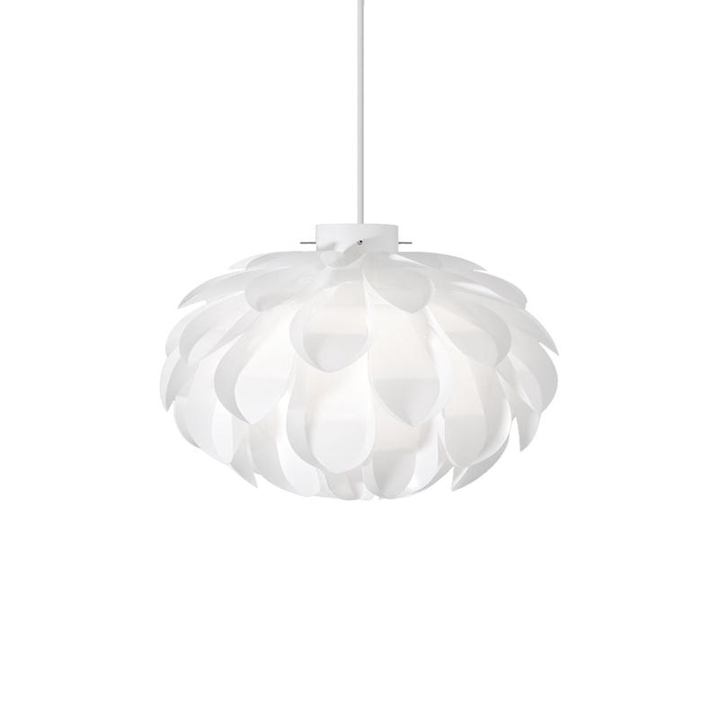 The Pinecone Pendant Light adds a playful and dynamic touch to your home. Featuring a white finish and layered petal design, this lamp exudes a symmetrical and vibrant aesthetic. Perfect for brightening up bedrooms with its unique charm.